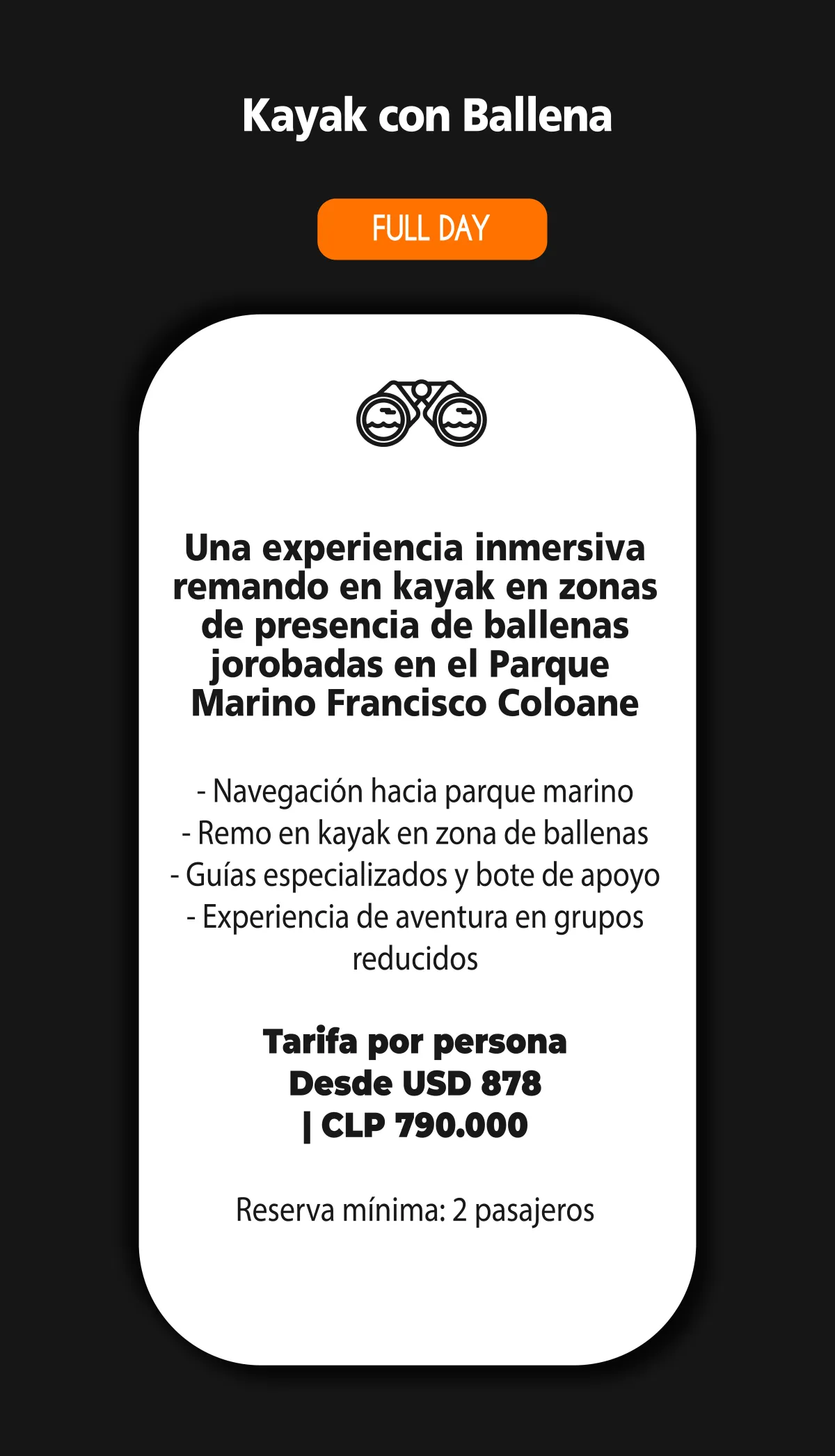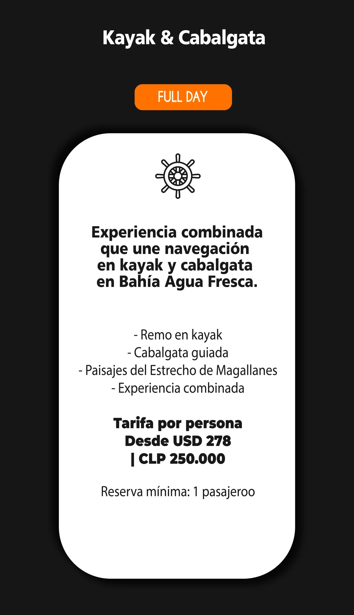 Tarifa por persona Desde USD 128 | CLP 115.000