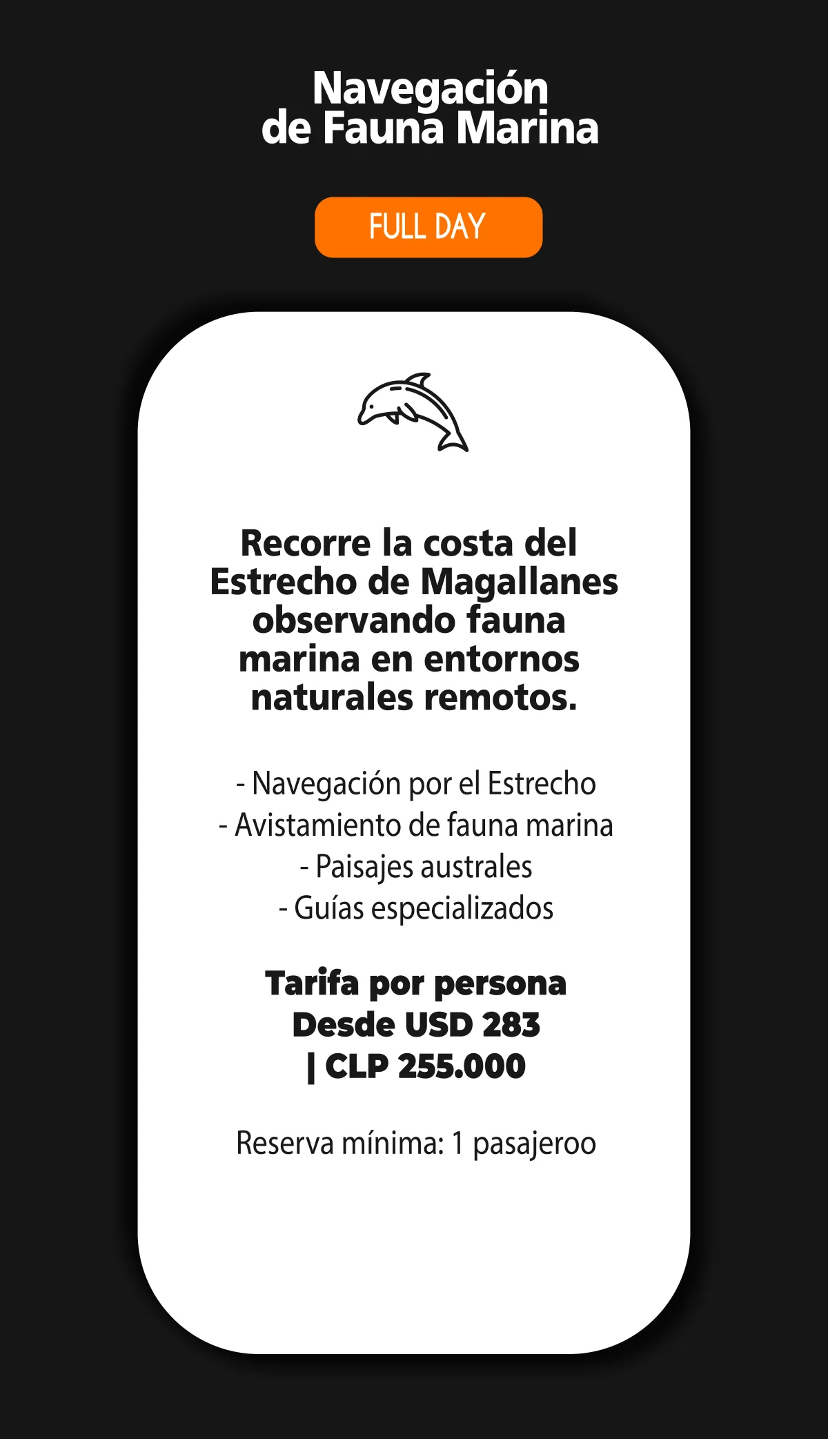 Explora el Estrecho de Magallanes en búsqueda de delfines australes en su hábitat natural.